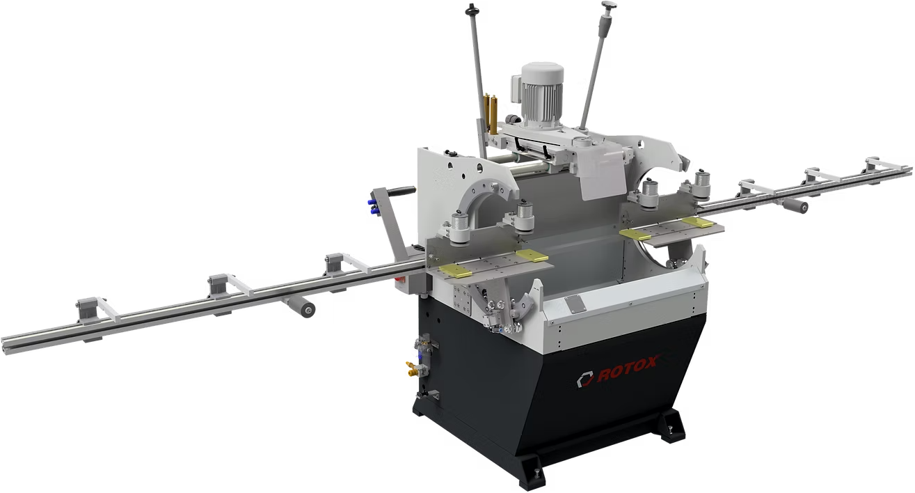 El Rotox KF 347 y KF 348 es un copiador de husillo diseñado para el mecanizado de perfiles de hojas y marcos de PVC, permitiendo el fresado de cilindros de perfil, orificios para manillas y cajas de cerradura en hasta tres caras en un solo proceso de sujeción. Sus características principales incluyen un sistema de plantillas flexible con cuatro pernos de copia, fácil carga y un amplio rango de fresado, siendo el KF 347 equipado con un motor de 1,5 kW y el KF 348 disponible con dos opciones de motor (0,85 kW y 1,1 kW).
