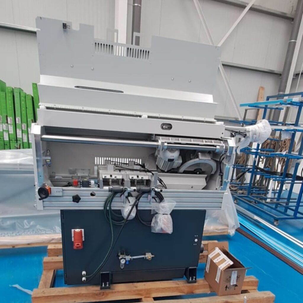 GLA 401 – Tronzadora de junquillos automática para el corte de 4 piezas simultáneas de PVC, diseñada para garantizar precisión, velocidad y repetibilidad en el proceso de fabricación.