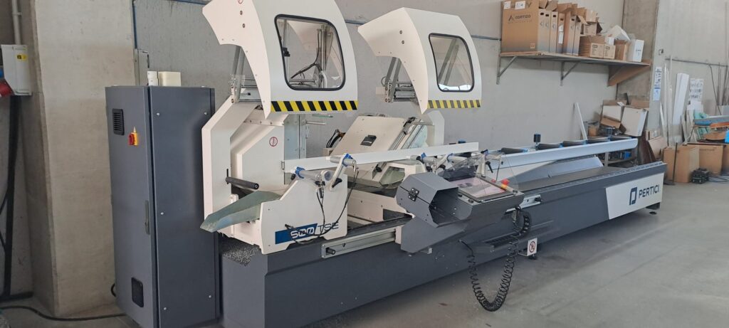 La 600 TSE de Pertici es una máquina de última generación diseñada para el corte preciso de perfiles, con doble cabezal (fijo y móvil) y posicionamiento electrónico que garantiza máxima exactitud en cada operación.