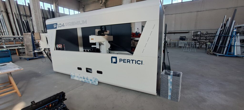 El centro de mecanizado P104 Premium de Pertici es una solución avanzada de 4 ejes diseñada para operaciones complejas de fresado, taladrado, roscado y mecanizado de extremos en perfiles de aluminio, PVC y aleaciones ligeras.
